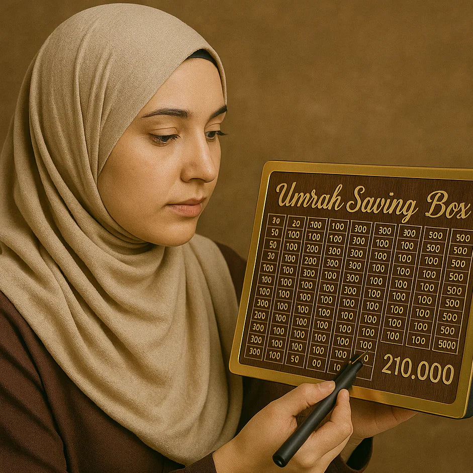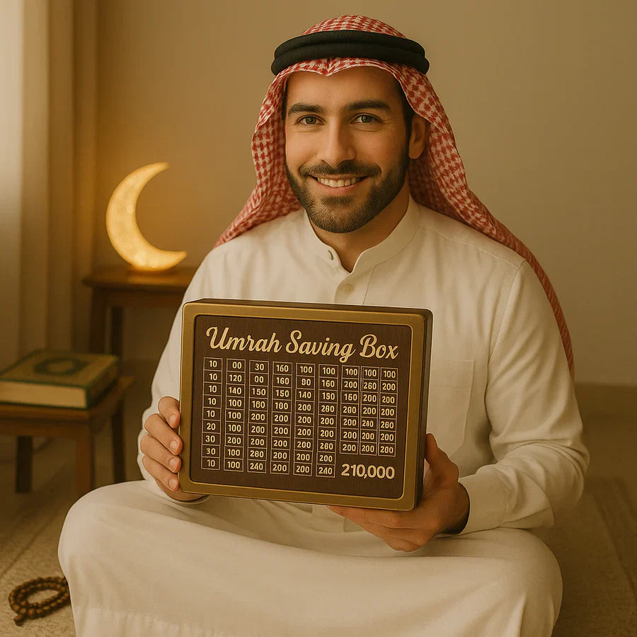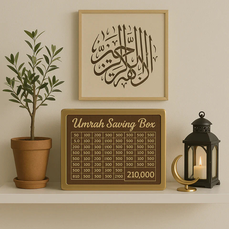 Are you planning your Umrah journey? Start saving with purpose using the Umrah Saving Box – a premium, beautifully crafted wooden box designed to help you reach your 210,000 saving goal easily and efficiently.